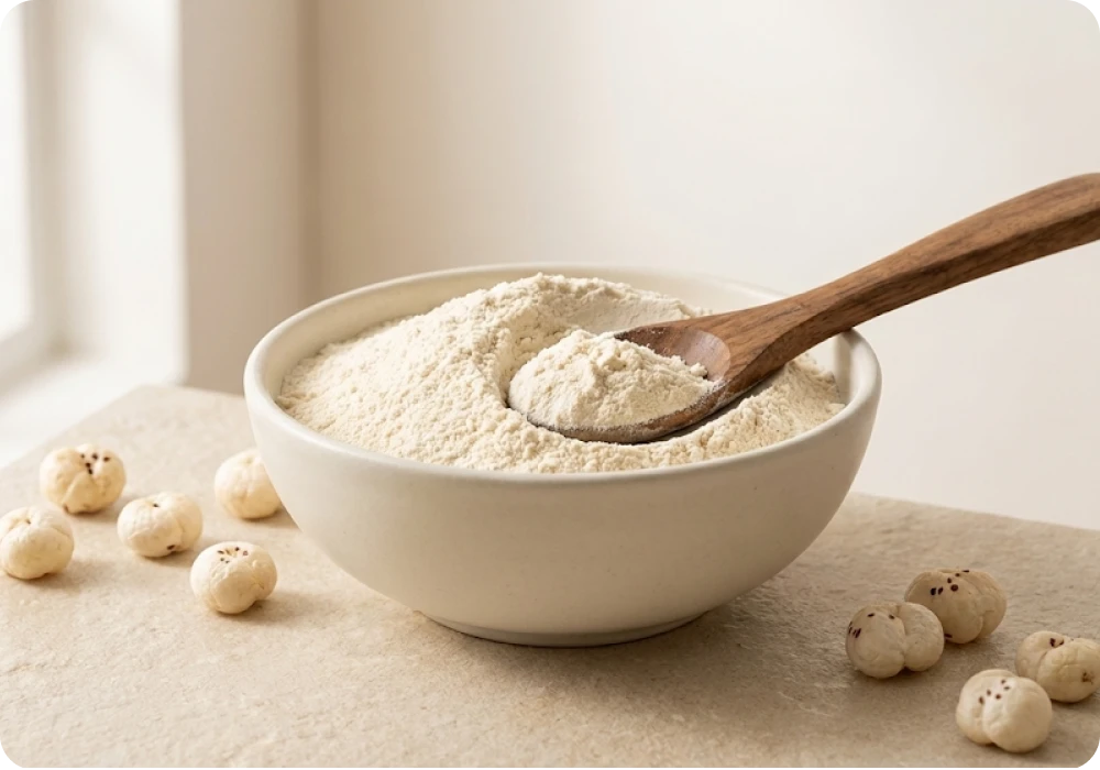 + Free ShippingFine fox nut flour made from premium makhana — gluten-free, high in protein, and perfect for healthy cooking.